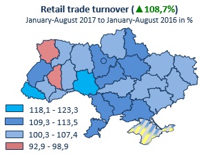 Turnover of retail trade in January-August 2017