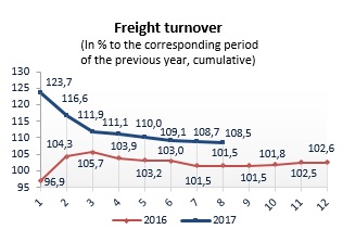Cargo transportation, January-August 2017