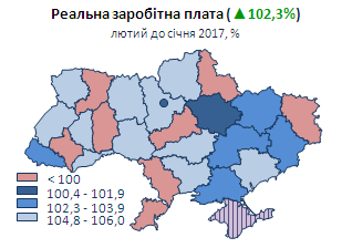 Індекси реальної заробітної плати за регіонами у 2017 році, у % до відповідного періоду попереднього року