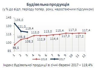 Індекси будівельної продукції у січні-березні 2017 року