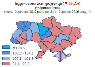 продукції тваринництва за регіонами у січні-березні 2017 року