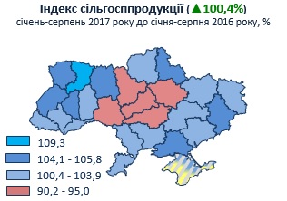 Індекс сільськогосподарської продукції за січень-серпень 2017 року