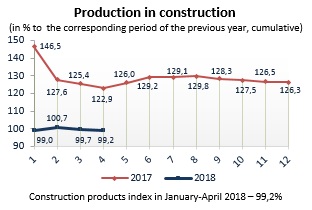 Price indices for construction and assembly operations in 2018 (to corresponding month of previous year)