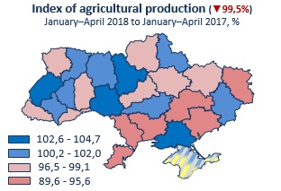 Indices of agricultural production by regions in 2017