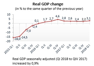 in 2018 (to the corresponding quarter of the previous year)