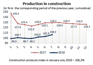 Price indices for construction and assembly operations in 2018 (to corresponding month of previous year)