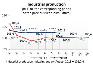 Output of industrial products by type in January-August 2018 by
