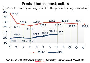 Price indices for construction and assembly operations in 2018 (to corresponding month of previous year)