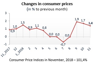 Price indices for construction and assembly operations in 2018 (to previous month)
