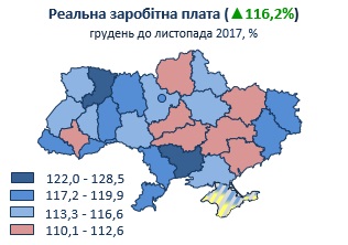 Індекси реальної заробітної плати за регіонами у 2017 році, у % до відповідного періоду попереднього року