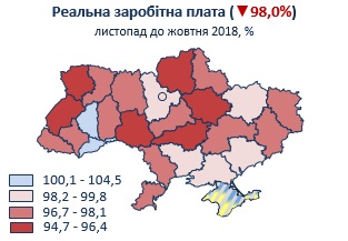 заробітної плати по регіонах у 2018 році, % до відповідного місяця