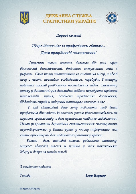 Вітання Голови Держстату І. Вернера