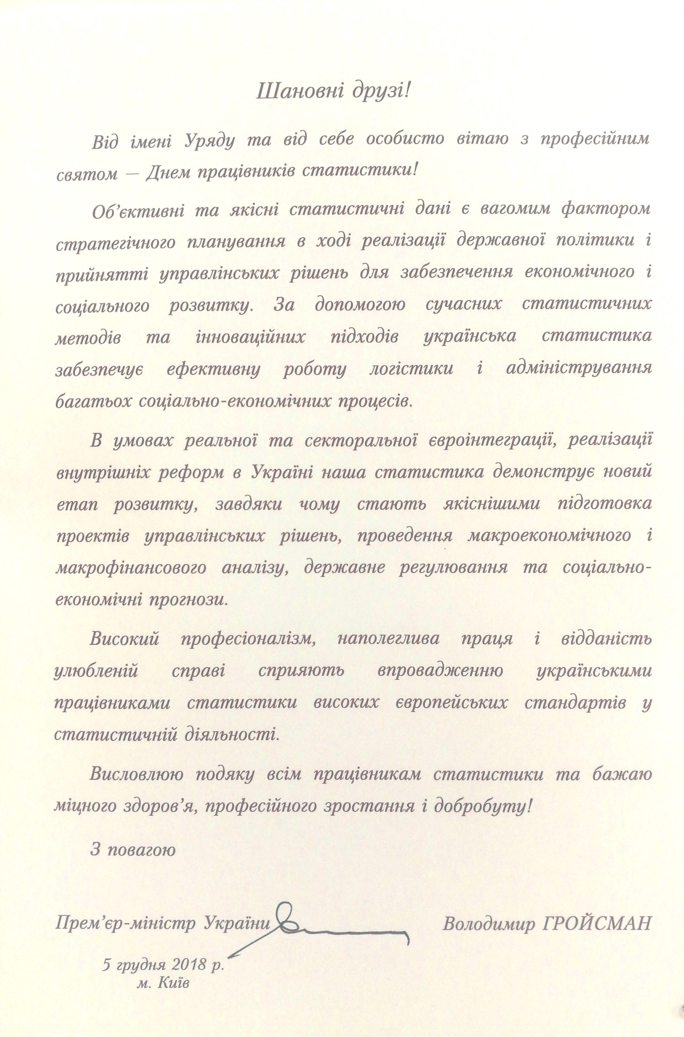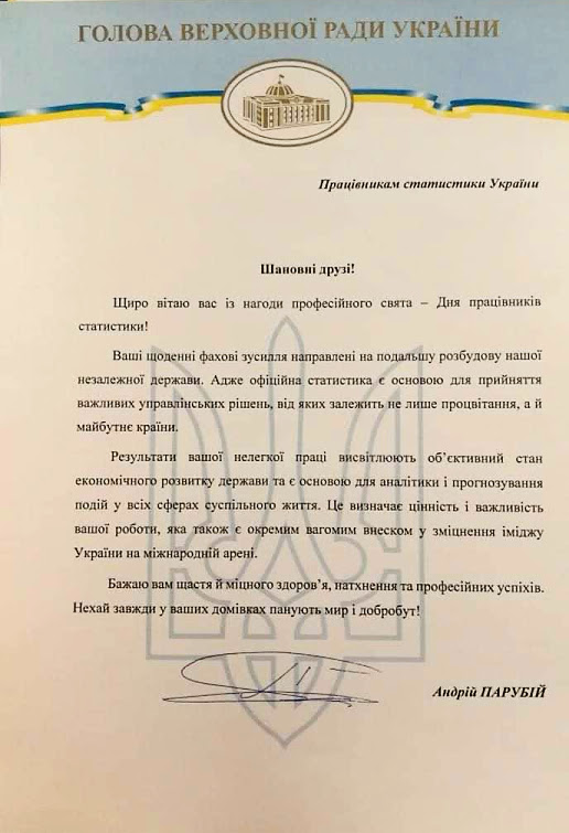 Вітання Голови Держстату