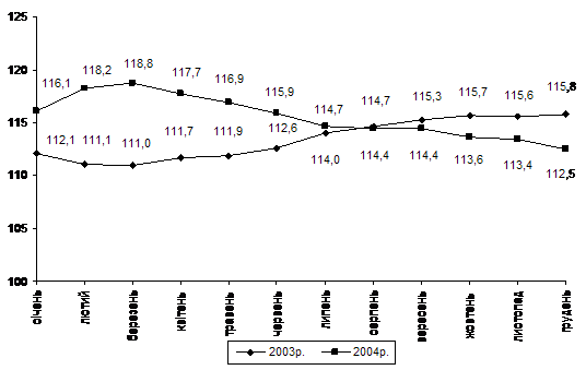 2004р. порівняно з 2003р. реальний валовий внутрішній продукт становив 112,0%.