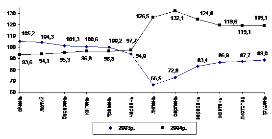 промисловості порівняно з 2003р. обсяги виробництва зросли на 4,1%.