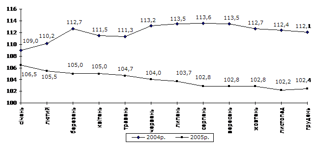 оперативними даними, у 2005р. порівняно з 2004р. реальний валовий внутрішній