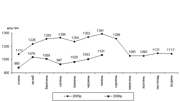 порівняно з січнем–липнем 2005р. Спостерігався приріст обсягів виробництва