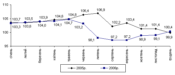 Індекс цін виробників промислової продукції за 2006р. в цілому становив 114,1 % (за 2005р. – 109,5%).