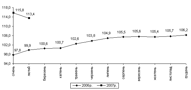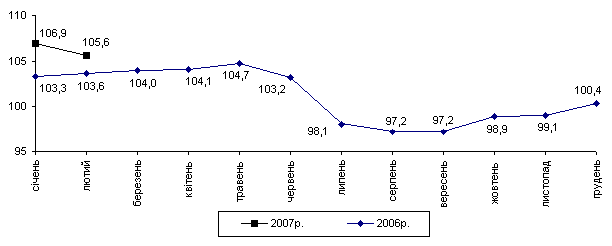 Індекс споживчих цін (індекс інфляції) у січні–лютому 2007р. становив 101,1% (у відповідному періоді попереднього року – 103,0%).