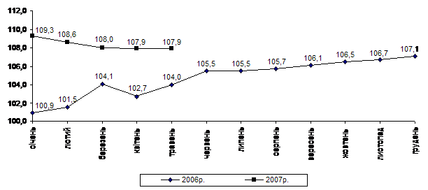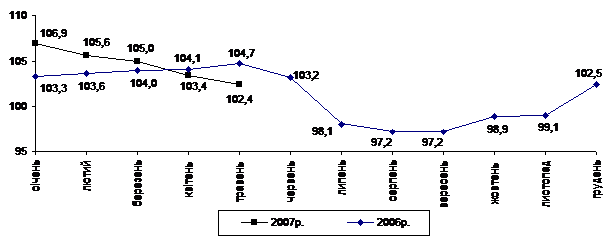 Індекс споживчих цін (індекс інфляції) у січні–травні 2007р. становив 101,9% (у відповідному періоді попереднього року – 102,8%).