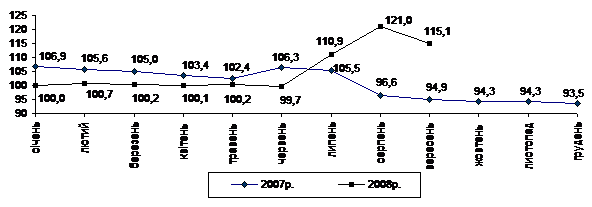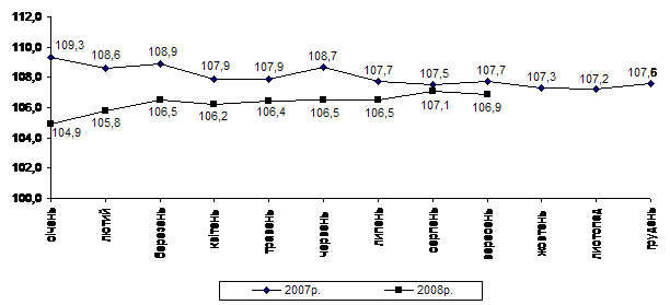 Індекс споживчих цін (індекс інфляції) у січні–вересні 2008р. становив 116,1% (у січні–вересні 2007р. – 108,6%).