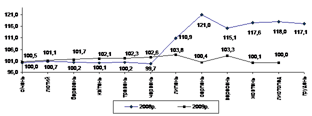 Індекс споживчих цін (індекс інфляції) у січні–листопаді 2009р. становив 111,3% (у січні–листопаді 2008р. – 119,8%).