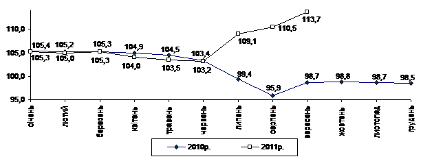 Індекс споживчих цін (індекс інфляції) у січні–вересні 2011р. становив 104,2% (у січні–вересні 2010р. – 107,4%).
