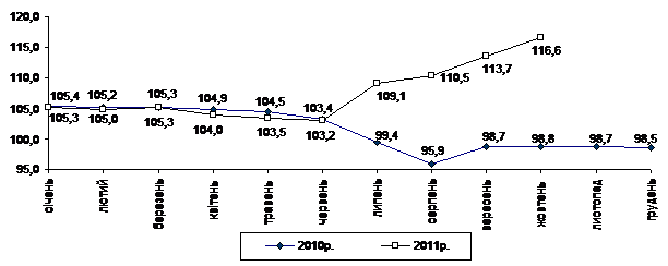 Індекс споживчих цін (індекс інфляції) у січні–жовтні 2011р. становив 104,2% (у січні–жовтні 2010р. – 107,9%).