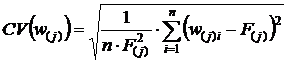 (коефіцієнтів перезважування) за формулою: