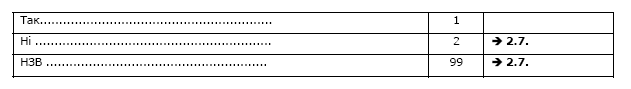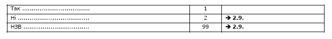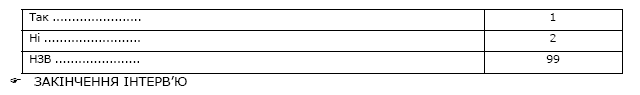 Якщо респондент не вибрав жоден із запропонованих варіантів відповіді і не має власного варіанту відповіді, позначте варіант відповіді 99 (НЗВ).