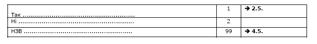 F Якщо у запитанні 4.1. відмічено всі відповіді „НЗВ” è 4.5.