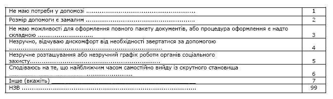 · причини, за якими населення, яке потребує допомоги, не звертається за нею до соціальних служб;