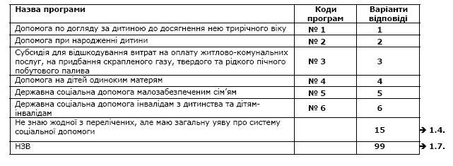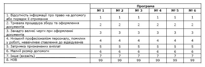 Збирання відомостей про оцінку населенням ефективності окремих програм соціальної допомоги здійснюється за такими програмами: