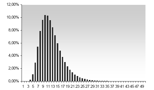 Зміст щільності розподілу полягає в тому, що вона показує, як часто з'являються активи віку Т у деякій ділянці при повторенні вимірів.