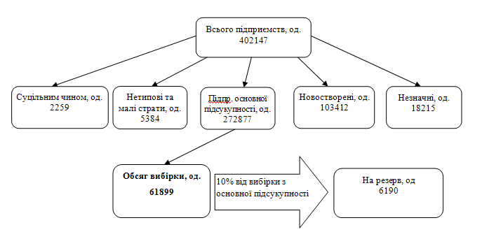 Інформаційним джерелом при формуванні вибіркової сукупності є статистичний реєстр підприємств.