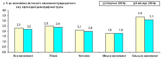 притаманні ринку праці: в середньому за 9 місяців у порівнянні з І півріччям 2004 року : -