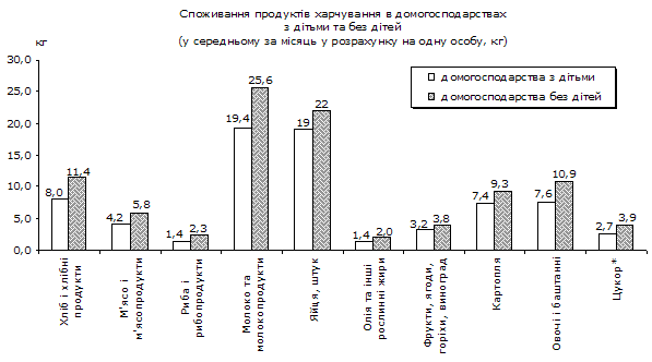 харчування, спожитих однією особою в домогосподарствах з дітьми, була в 1,6–1,2 раза меншою, ніж у