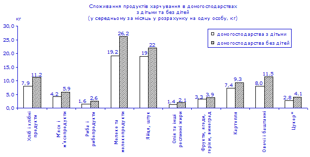 У домогосподарствах з дітьми однією особою було спожито більше, ніж у