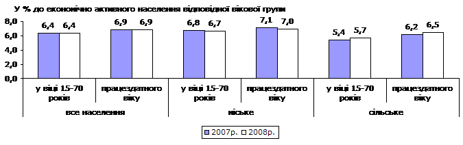 у % до економічно активного населення відповідної вікової групи |