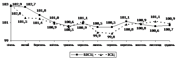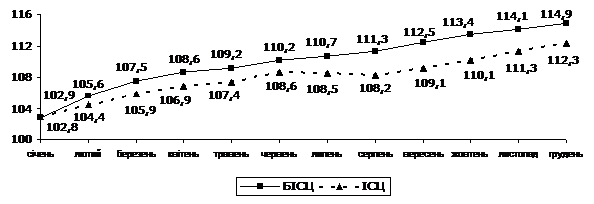 Базовий індекс споживчих цін (БІСЦ) у грудні 2009р. становив 100,7%, за рік в цілому – 114,9% (у грудні 2008р. – 102,0%, за рік в цілому – 121,3%).
