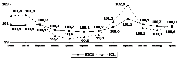 БІСЦ та ІСЦ у 2010 році (у % до попереднього місяця)