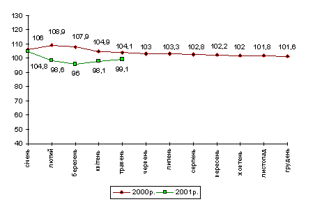 січень-травень 2001р. магістральними трубопроводами транспортовано 95,8